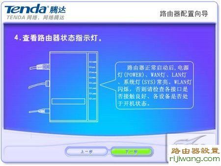 然后向导会提醒用户查看路由器状态指示灯,如下图: