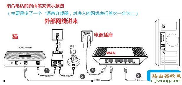 含有电话的路由器安装示意图